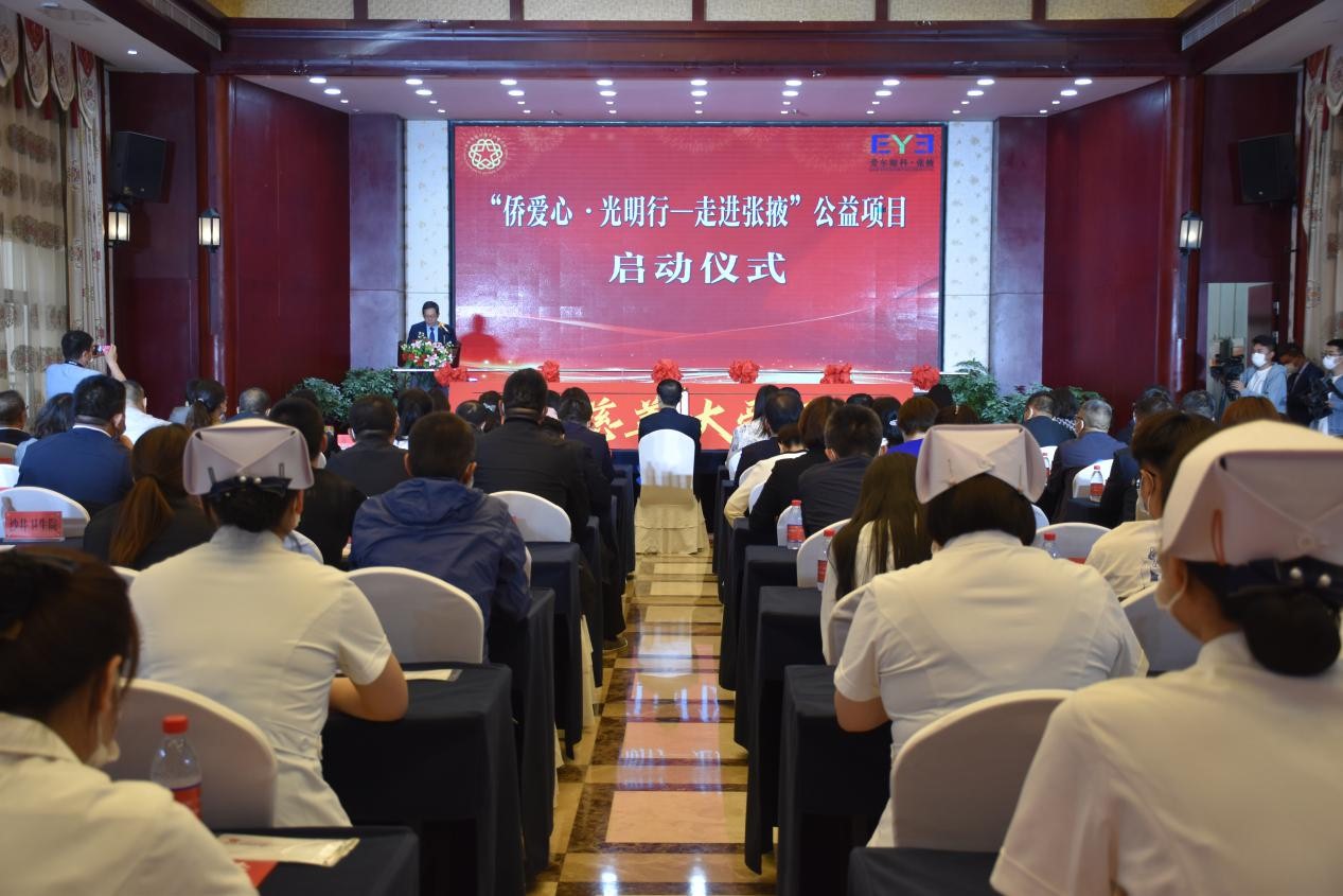 5月25日,“侨爱心·光明行——走进张掖”公益活动启动仪式在金阳国际酒店举行。省侨联六届委员会主席、七届委员会顾问费亚夫,市委常委、市委统战部部长、市政协党组副书记于永梅、爱尔眼科医院集团甘青宁(藏区)CEO方军出席启动仪式并致辞。市直、区有关部门单位,甘州区各乡镇(街道)、社区卫生服务中心、乡镇卫生院负责人,部分归侨侨眷及张掖爱尔眼科医院部分医务工作者、患者等近百人参加。