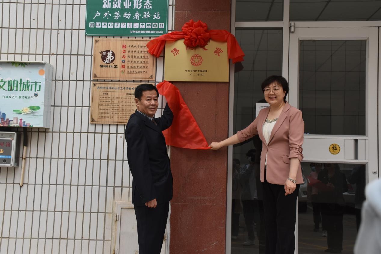 启动仪式后,费亚夫和于永梅为张掖市“侨爱心·光明行”志愿者服务队授旗,看望白内障手术患者,深入甘州区平山湖蒙古族乡卫生院等地调研“侨爱心·光明行”项目实施情况,并为甘州区南街佛城社区“侨胞之家”揭牌。