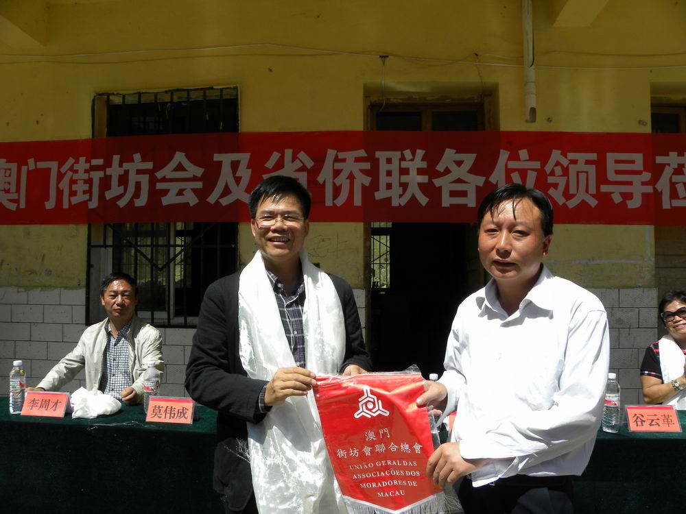 2012年9月3日至7日,省侨联杜逸副主席陪同澳门街坊会联合总会莫伟成副理事长一行5人,前往舟曲县博峪乡博峪学校,对该会于2010年捐赠42万元人民币的教学设备使用与维护情况进行了回访。