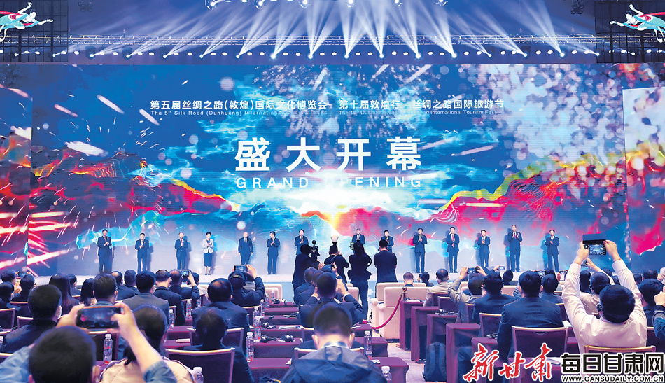 第五届丝绸之路(敦煌)国际文化博览会和第十届敦煌行·丝绸之路国际旅游节开幕式暨高峰会议在敦煌国际会展中心盛大开幕(摄影:高樯)