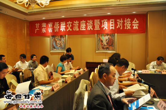 作为第十八届兰洽会的主要活动之一,7月5日下午,甘肃省侨联与广东省侨联交流座谈暨项目对接会在兰州飞天大酒店召开。甘肃省侨联副主席兼秘书长杜逸主持会议。参加会议的有中国侨商代表团、广东侨联代表团以及甘肃的企业家、项目科研人员等60余人。 甘肃省侨联副主席兼秘书长杜逸主持会议并介绍甘肃侨联情况 座谈中,首先由甘肃省侨联副主席杜逸和广东省侨联副主席华清文分别介绍了甘肃省侨联、广东省侨联的基本情况。 广东省侨联副主席华清文介绍广东侨联情况 广东省侨联副主席华清文表示,通过这次交流会,广东侨联将更加关心与支持甘肃的发展,更多地帮助推介宣传甘肃,搭建招商引资平台,不断拓展以侨引资、以侨引智、以侨促贸的广度和深度,使更多的海外侨商组织和海外侨胞来甘肃投资兴业,不断提升甘肃对外开放的层次和水平。 白银市政府副市长张晶介绍白银市情况 项目持有人介绍项目 对接会上,白银市政府副市长张晶整体推介宣传了白银市,兰州大学药学院生物学研究所所长杨永建、西北师范大学物理与电子工程学院副教授梁喜银、兰州天慈医药保健品有限公司办公室主任陈文波作为甘肃省项目持有人分别在对接会上对10个项目进行了推荐介绍。这10个项目包括鲜卑花属植物资源开发与利用(“香巴拉”藏茶的开发)、冬虫夏草深加工(菌丝体)产业化生产出口基地、便携式油罐呼吸阀检测仪、可燃气体浓度检测仪检定箱、汽车空调冷媒回收加注机、分体式太阳能热水器控制器等。 此次座谈交流及项目推介会是今年3月8日两省侨联在北京钓鱼台国宾馆签署友好合作协议后的首次合作,充分体现了广东侨联对甘肃侨联工作的支持。通过这次对接会,将更大地促进两省间更宽领域、更高层次、更大力度的合作,实现相互间更大的互利共赢! 相关新闻链接: 甘肃日报兰洽会特刊: http://news.163.com/12/0706/06/85N7NFAA00014AED.html 中新网: http://www.chinanews.com/zgqj/2012/07-09/4018926.shtml 新浪新闻中心: http://news.sina.com.cn/o/p/