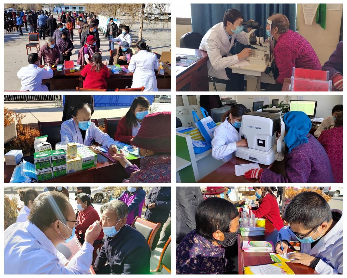 义诊现场,通过宣讲、摆放宣传展板、发放宣传手册、测血压血糖、视力检测等方式,让群众在家门口享受到便捷的医疗服务;为群众免费发放口罩、药品等医疗物资,为前来就诊的群众仔细诊查病情、分析病因,提供切实可行的治疗方案和健康指导,对现场筛查出的白内障等眼疾患者将给予免费手术治疗。