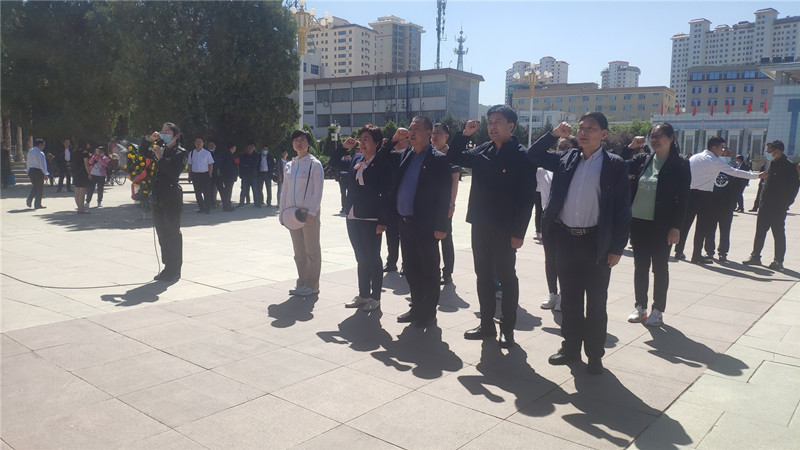 在会师塔前,全体党员干部向革命先辈鞠躬致敬,敬献花篮,并庄严的举起右拳,重温入党誓词,领悟坚守党员的初心使命。