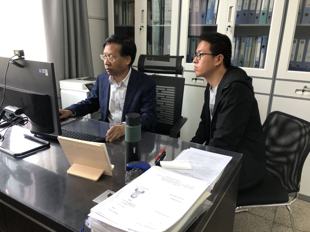 兰州大学物理科学与技术学院教授王育华(左)指导学生修改论文(5月6日摄)。新华社记者 张文静 摄