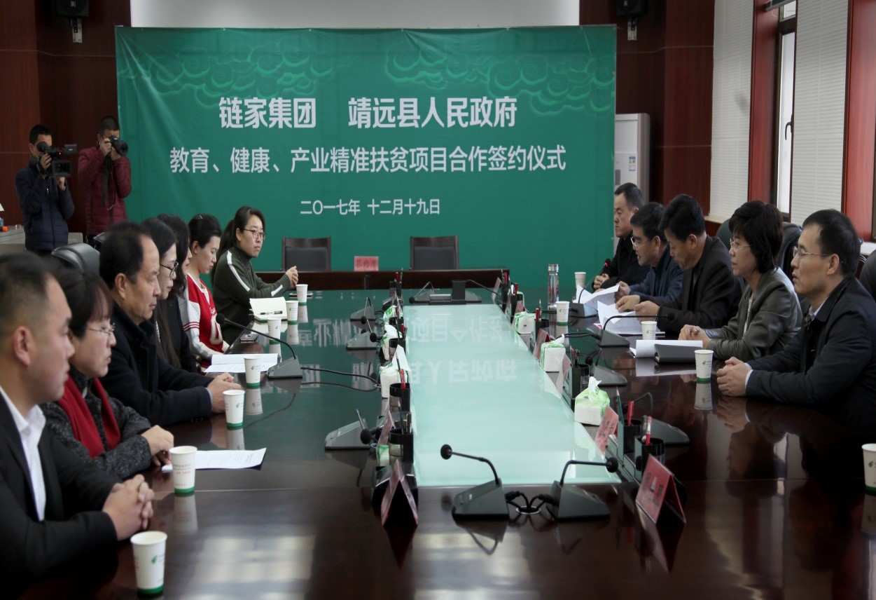 2017年12月19日,链家集团与靖远县人民政府“教育、健康、产业精准扶贫项目合作签约仪式”在靖远县成功举行。白银市委常委、靖远县委书记郑钰;白银市委统战部副部长、市侨联党组书记、主席周明成及市县相关领导和企业代表出席签约仪式。