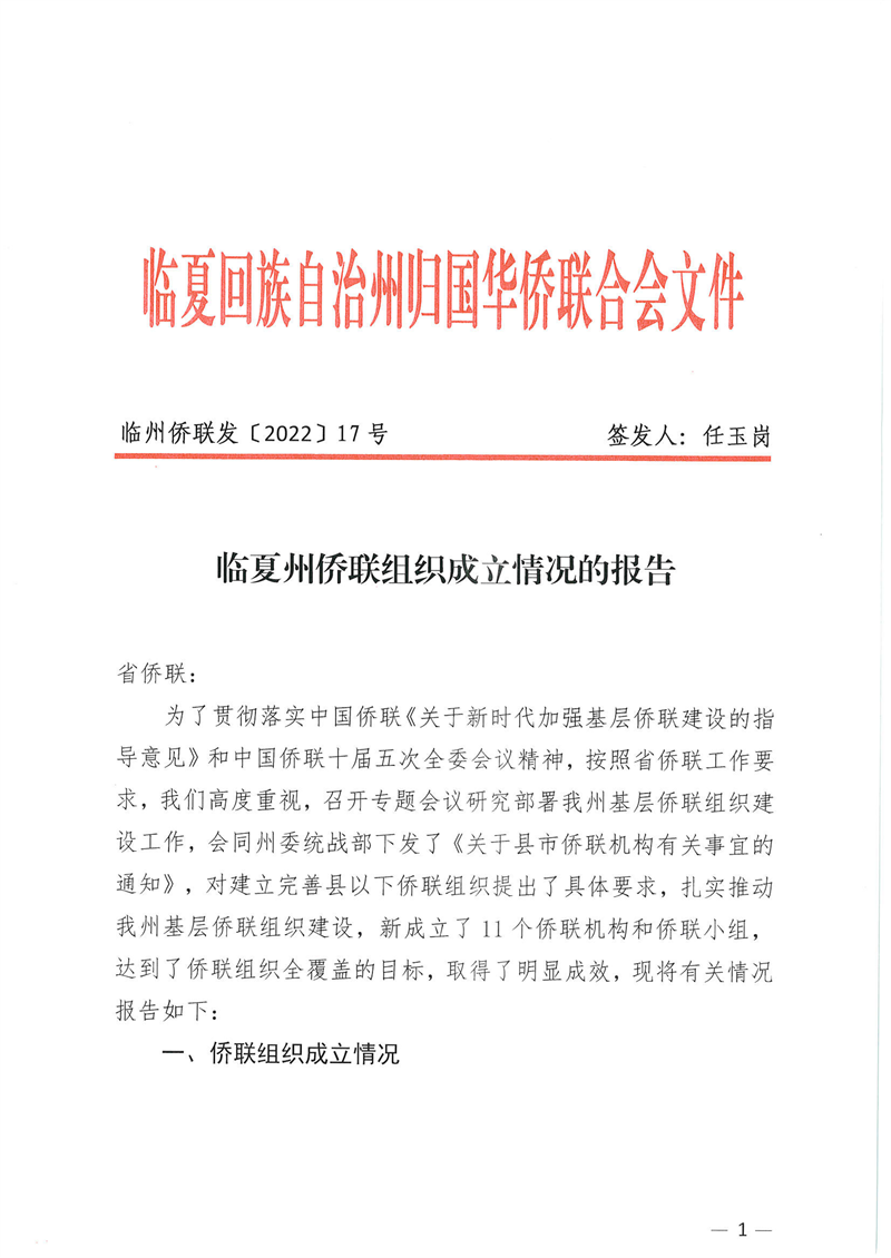 甘肃省侨联主席闫鹏勋批示:“临夏州侨联推动侨联基层组织建设有办法、有力度,取得良好成绩,值得其他市州侨联学习。”现将有关情况转载如下。