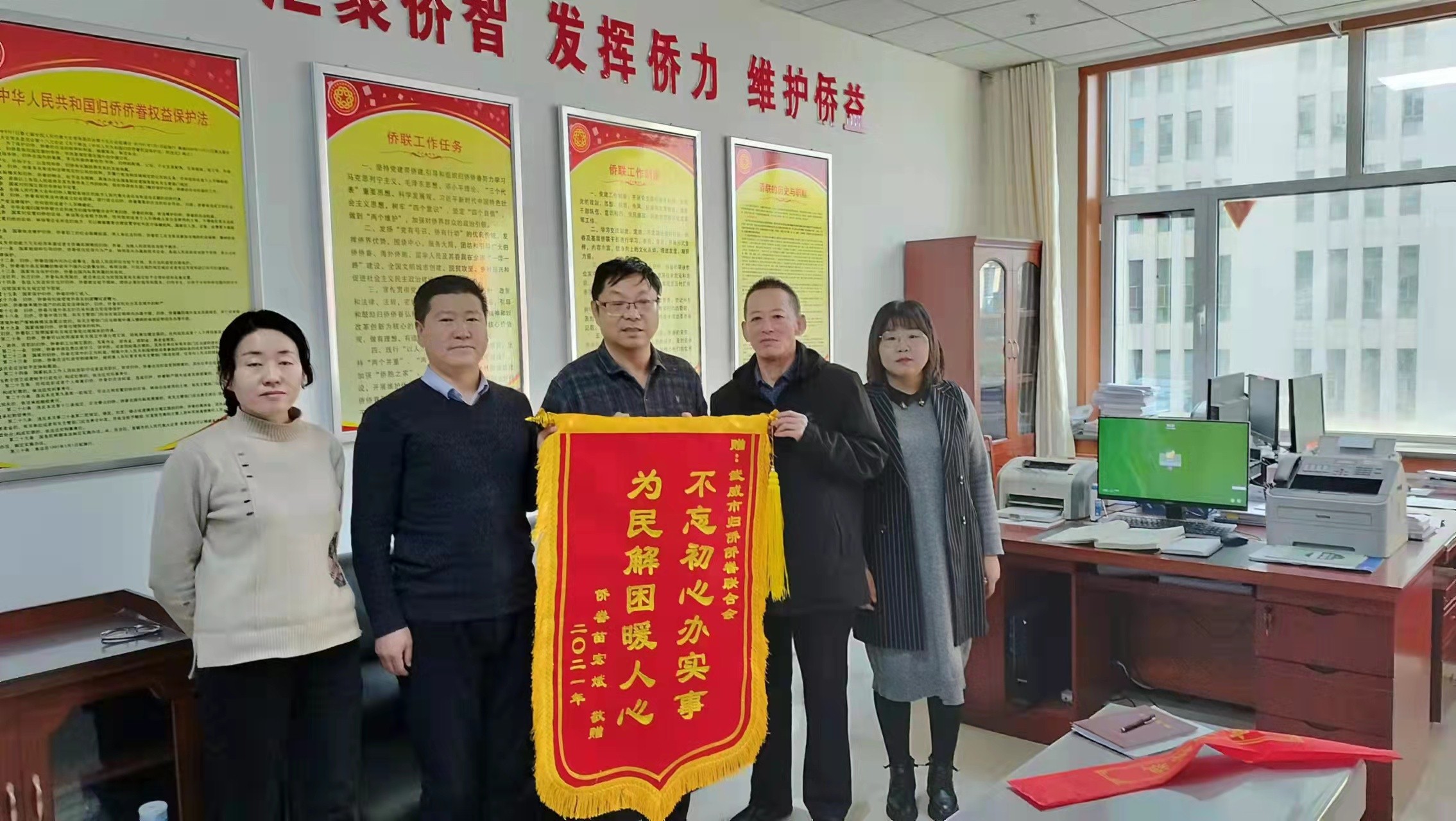 ---美国侨眷向武威市侨联赠送锦旗,对市侨联多年的帮助表示感谢