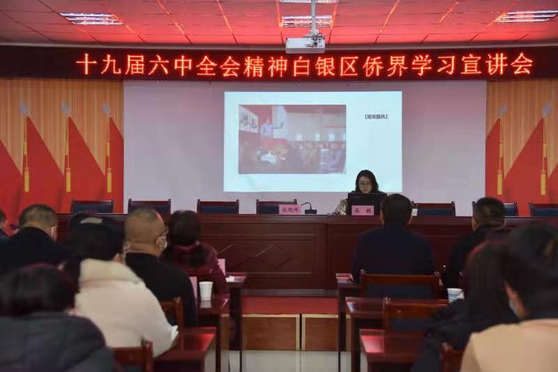 为深入学习贯彻党的十九届六中全会精神,12月7日,白银市侨联联合白银区委统战部在白银区“侨胞之家”举办“十九届六中全会精神”侨界学习宣讲会。