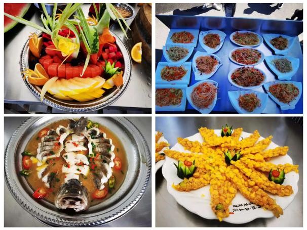 现场教学中,在培训老师的精心讲解和各位学员的努力学习下,从最初的颠勺练习、刀工练习、基本摆盘到后期能做出金汤鲈鱼、河州发菜、香辣钵钵鸡等美味菜肴,大家熟练掌握了中式烹饪、牛肉拉面等方面的实用技能。
