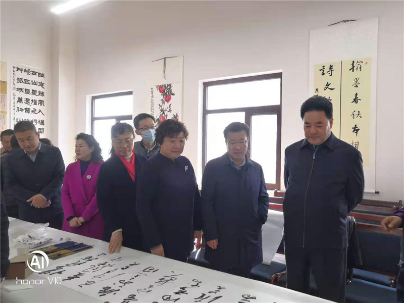 闫鹏勋主席和张延保副书记参观景泰县侨联小组书画笔会活动