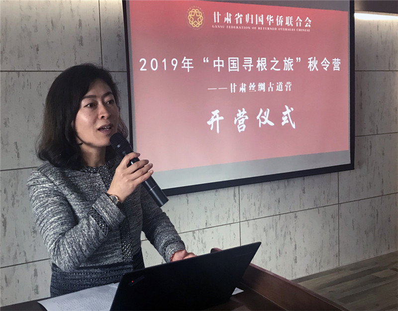 10月19日,由中国侨联主办,甘肃省侨联承办的2019年“中国寻根之旅”秋令营甘肃“丝绸古道”营开营仪式在兰州举行,省侨联党组成员徐妍丽出席开营仪式并致辞。