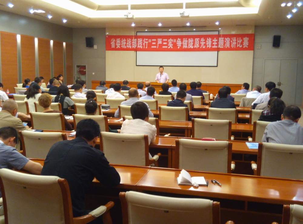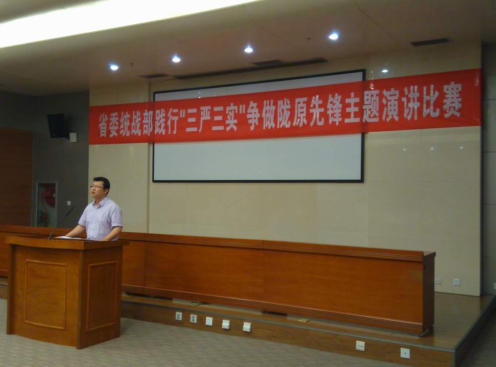 2015年6月10日,省委统战部在省委会议中心西二楼会议室举行了“践行‘三严三实’,争做陇原先锋”主题演讲比赛。省委统战部机关及统战系统单位全体党员参加,并派出10名选手参加比赛。