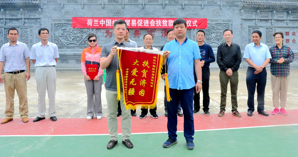 7月9日,荷兰中国经济贸易促进会捐赠扶贫款仪式在临夏县马集镇多木寺村文化广场举行。中华海外联谊会高级顾问、甘肃省海外联谊会名誉会长、旅荷华侨总会永远名誉会长胡志光,荷兰中国经济贸易促进会执行会长张龙,省侨联主席樊向勤,省侨联党组成员、秘书长芦小燕以及荷兰中国经济贸易促进会代表团成员、出席第22届兰洽会的侨领侨商、临夏县领导共计80多人参加了捐赠仪式。