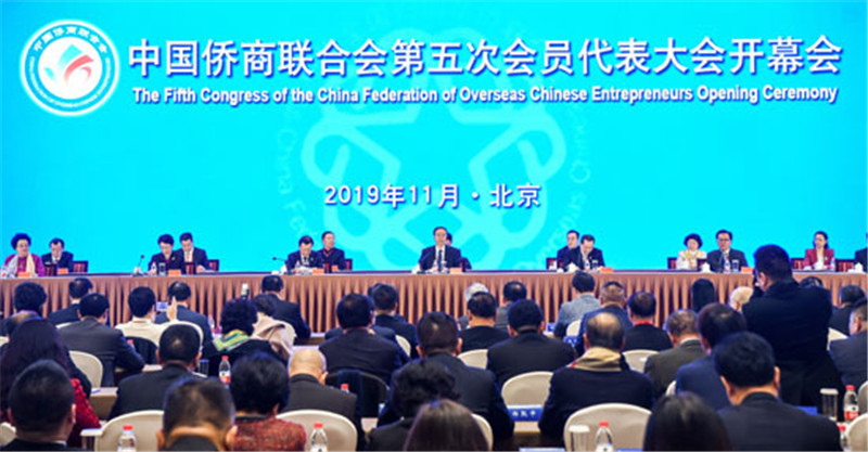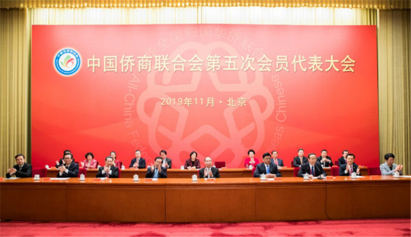 中国侨联党组书记、主席万立骏出席会议并作了题为《凝聚侨商力量为新时代奋斗》的讲话。万立骏说,这是进入新时代召开的一次侨商盛会,是落实党中央涉侨机构改革任务、推进中国侨商投资企业协会融入中国侨商联合会的实际行动,是两家商会发展进程中的一件大事,是站在新的历史起点上,推动侨商会发展、凝聚侨商力量、为新时代奋斗的一次重要会议。中国侨商联合会第五次会员代表大会开幕,这标志着中央部署的两家商会整合融入改革任务将顺利完成,也标志着规模最大、实力最强、联系面最广、海内外影响最大的侨商组织将正式成立。万立骏代表中国侨联,就贯彻中央精神、进一步做好侨商会工作,提出四点意见:一是对中国侨商联合会和中国侨商投资企业协会取得的成绩、发挥的作用应当充分肯定。二是深刻领会习近平总书记在民营企业座谈会上的重要讲话和中共十九届四中全会精神,把准大势、保持定力、坚定信心。三是广大侨商、侨资企业家要像改革开放初期那样,积极投身、热情支持中国发展,做新时代的参与者、贡献者、受益者。四是以习近平新时代中国特色社会主义思想为指导,努力建设世界一流、中国特色的侨商组织。