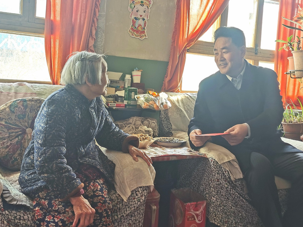 在临洮县洮阳镇慰问侨眷苟秉蓉