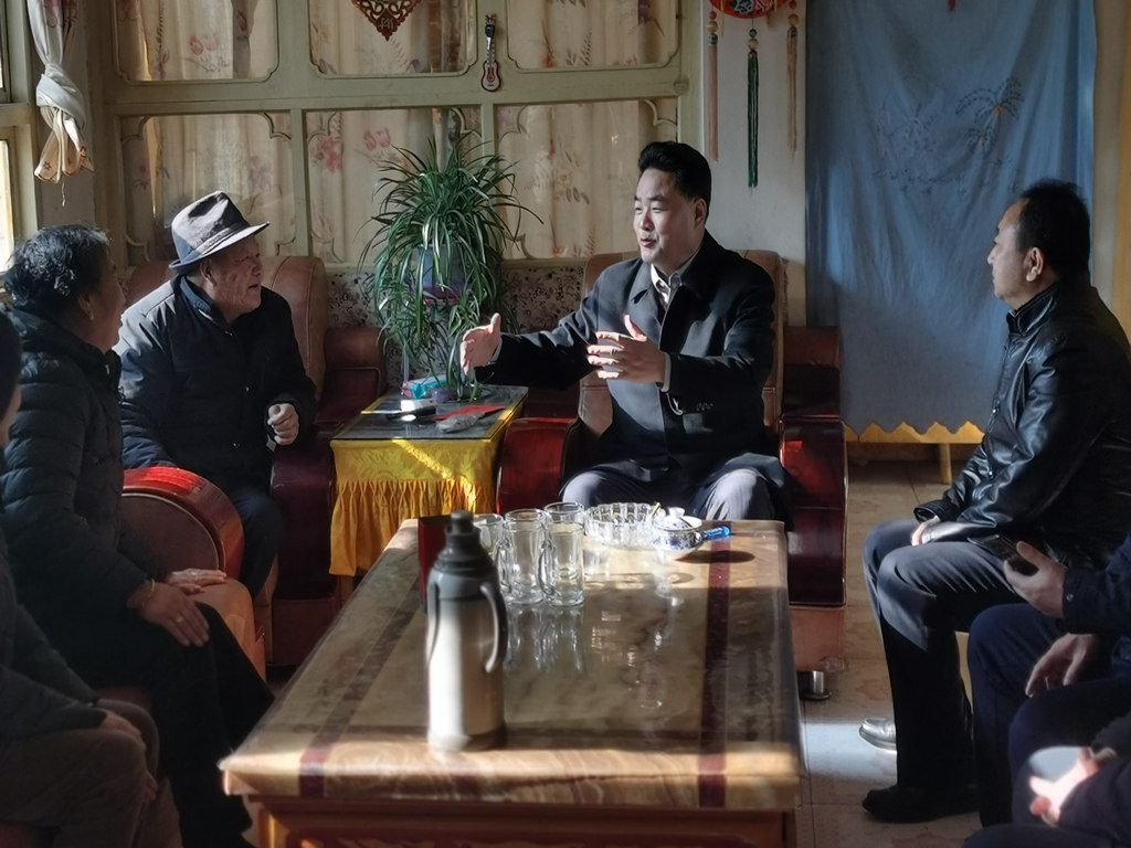 在临夏县韩集镇上阴洼村慰问侨眷马远志