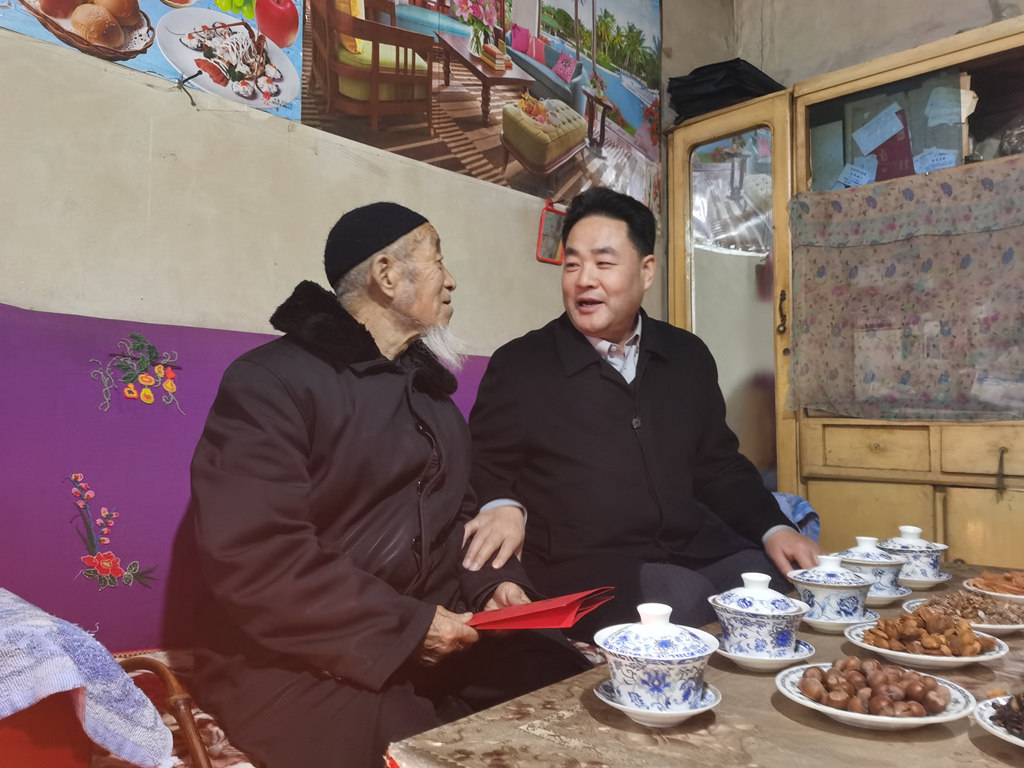 在临洮县玉井镇店子村慰问侨眷孙泽民