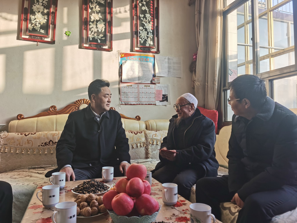 在临夏县马集镇多木寺村慰问侨眷马雄民