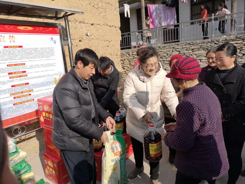 1月23日,慰问组一行带着米、面、油、取暖炉等来到精准扶贫点洛塘镇村杨家庄村,看望、慰问贫困户及老党员。