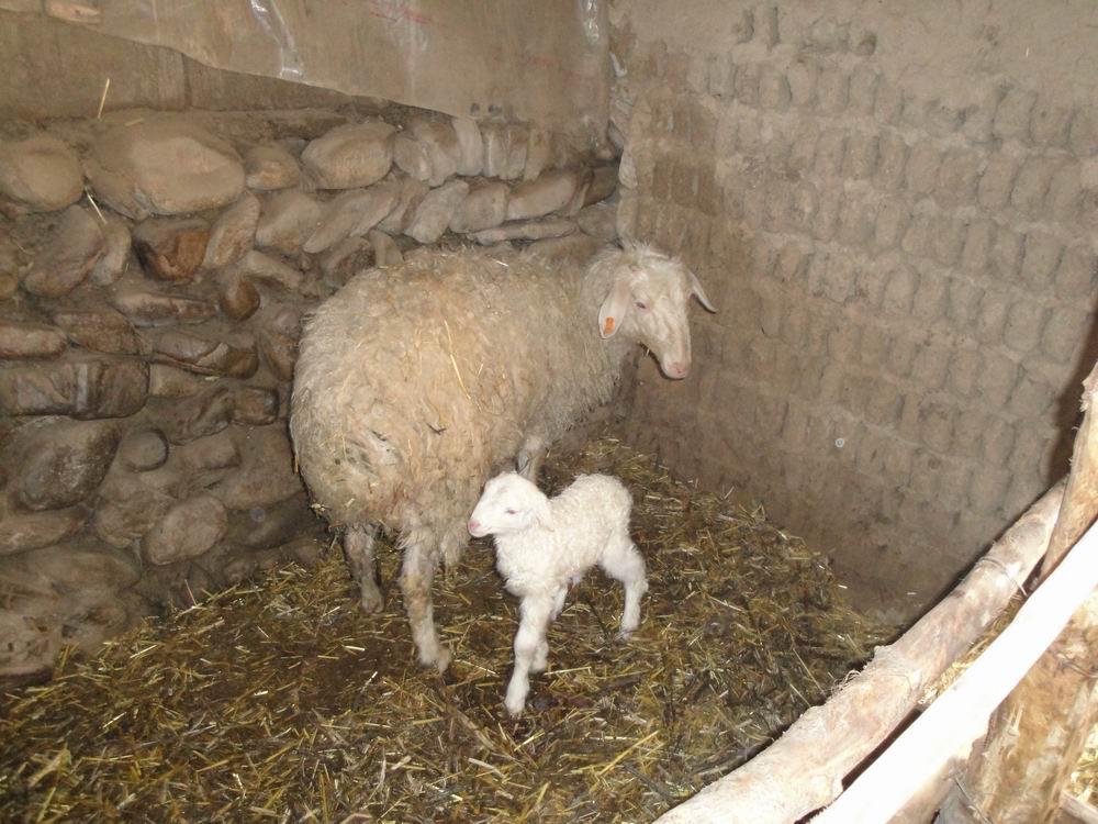 铁洒力海家母羊刚生产的小羊羔