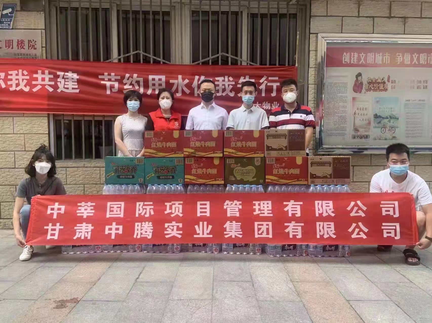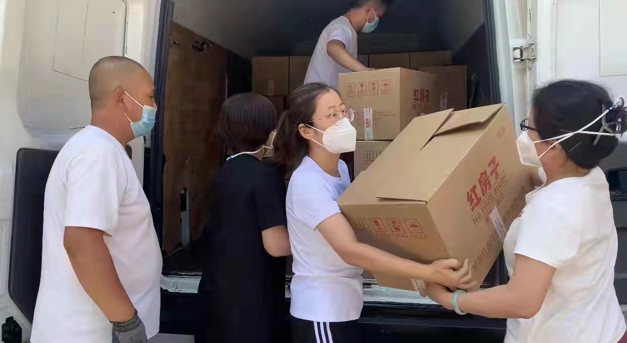 省侨商联合会常务理事、甘肃上易禾家具有限公司总经理王茜,省侨商会理事、甘肃泰合一科技有限责任公司总经理杜雅慧,将疫情防控一线急需的矿泉水、面包等生活物资,送往城关区渭源路街道、盐场路街道。