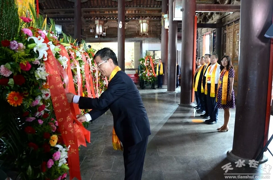 6月22日上午9时50分,全国政协副主席苏辉宣布公祭大典开始,甘肃省委副书记、省长唐仁健恭读祭文,赞美在习近平新时代中国特色社会主义思想指引下各领域取得的辉煌成就,祝愿民富国强、早日实现中华民族伟大复兴的中国梦。甘肃省政协主席欧阳坚主持公祭大典,中国国民党前主席吴伯雄及夫人戴美玉,甘肃省委副书记孙伟,国务院港澳办、国务院台办等主办单位及国家有关部委代表,各民主党派代表,兄弟省区市及香港特别行政区、澳门特别行政区、台湾地区代表以及来自美国、英国、日本、澳大利亚、加拿大、意大利、马来西亚、西班牙等10多个国的华人华侨代表,全国先进模范人物代表及天水市各界群众代表参加了大典活动。