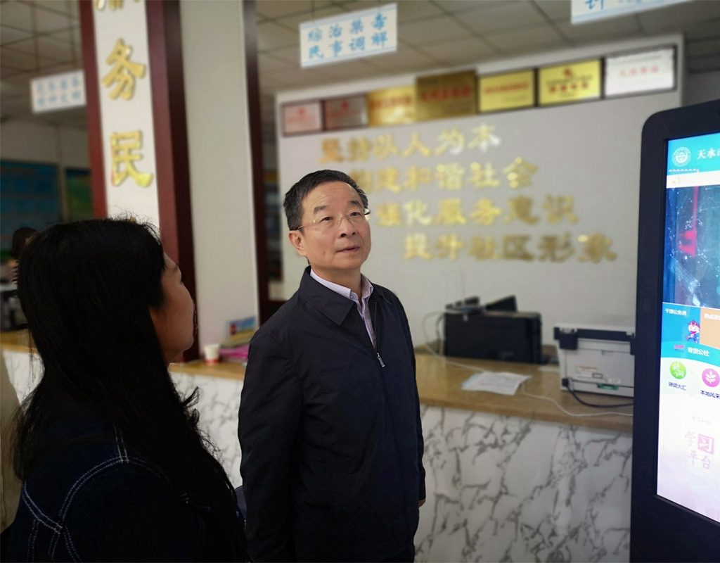 丁主席在天水市滨河路社区调研基层组织建设