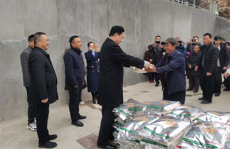 10日下午,闫鹏勋一行来到杨家庄村,与村民打招呼、拉家常,为每户村民发放了大米等生活物资,并提前向村民们拜年,祝愿大家过一个喜庆祥和的新春佳节。