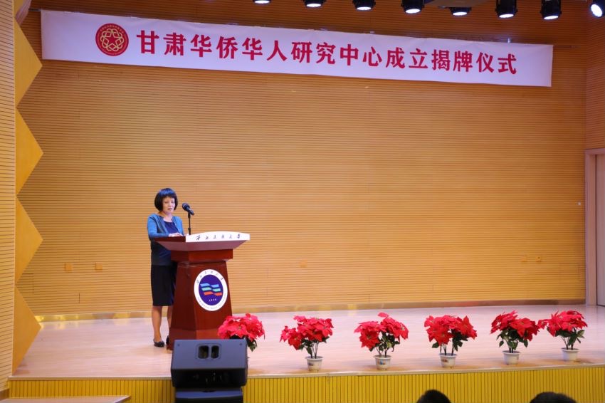 会上,甘肃华侨华人研究中心主任、西北民族大学历史文化学院教授刘英作表态发言。