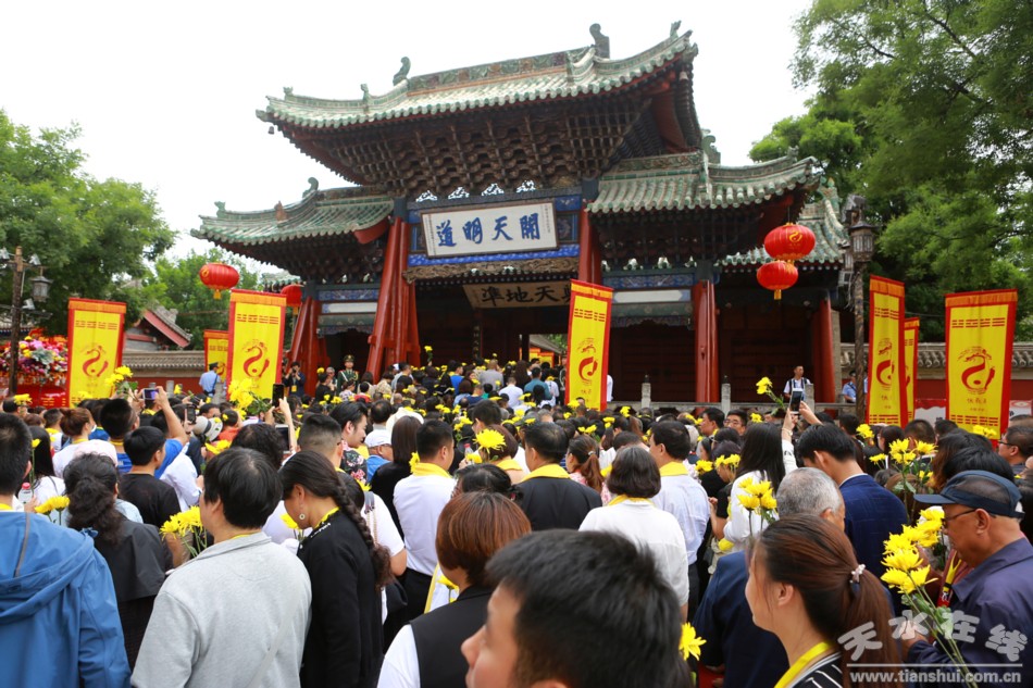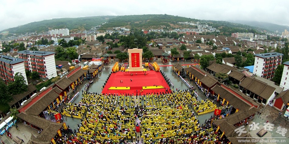 伏羲是中华各民族共同敬仰的人文始祖,位居“三皇之首”、“百王之先”。天水是伏羲的诞生地和伏羲文化的发祥地,公祭伏羲由来已久,相沿成习,至今已成功举办了28届。经过30年的努力,太昊伏羲祭典列入国家级首批非物质文化遗产目录,相继被国家有关机构授予“中国最具发展潜力十大节庆”和“最具国际影响力”节庆活动。