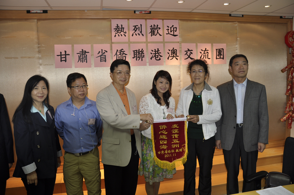 省侨联办公室主任芦小燕代表省侨联向香港油尖旺工商联会沈安仪主席赠送锦旗