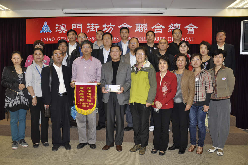培训交流团一行与澳门街坊会联合总会互赠纪念品并合影