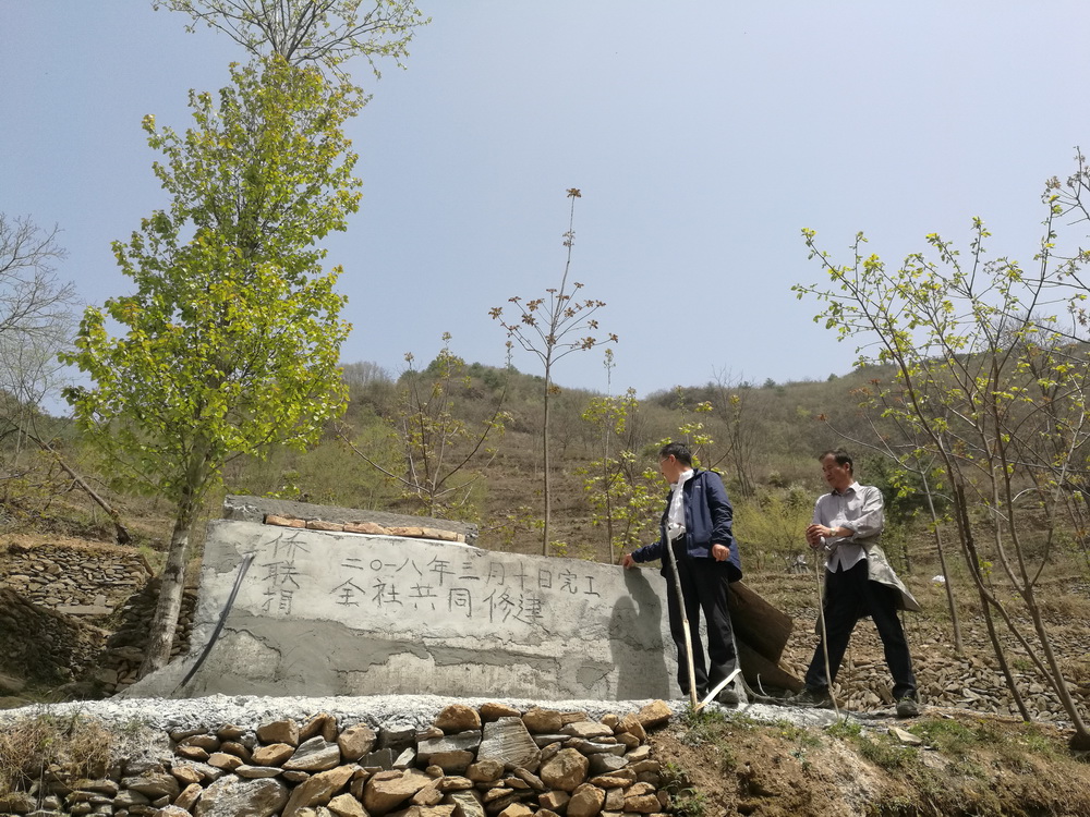 实地查看修建好的蓄水池