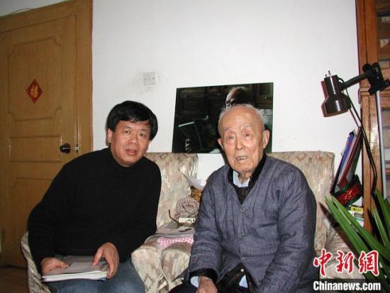 图为2000年,常嘉煌(左)拜会国学大师季羡林先生。 受访者供图 (图片来源:中新网)