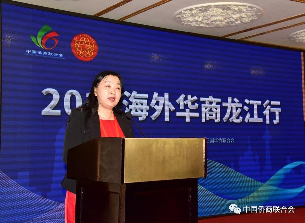 中国侨联常委、中国侨商联合会常务副会长刘爱丽在致辞中表示,新时代就要有新气象,新时代就要有新作为,随着中央启动新一轮振兴东北战略,广大海内外侨商再次把眼光聚焦到东北、聚焦到黑龙江,都希望能够抓住这难得的发展机遇一显身手。刘爱丽说,中国侨商联合会组织海内外华商出席此次活动,就是希望广大华商能够紧密把握黑龙江省委省政府提出的创新实施“龙江丝路带”、“中蒙俄经济走廊”等战略规划,积极投身到新一轮振兴黑龙江的建设中。刘爱丽强调,“2018海外华商龙江行”活动是中国侨联“创业中华”系列重要活动之一,活动的主旨是:以侨为“桥”,广泛联系海外侨胞,充分发挥侨界人才资源荟萃、经济实力雄厚的优势,为东北振兴,为龙江经济发展做出贡献。希望与会的海内外侨商借此机会广交朋友、深化交流、合作共赢。刘爱丽表示,中国侨商联合会将继续充分发挥自身独特优势,在广大海外侨商中更加广泛地宣传黑龙江经济社会发展的良好态势,鼓励引导更多的海外侨商积极融入黑龙江新一轮经济建设中,为促进黑龙江省老工业基地振兴发展,为促进黑龙江省对外开放事业发展和“一带一路”建设做出新的更大贡献。