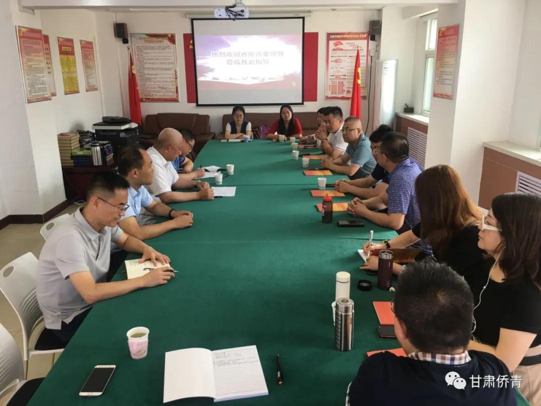 6月24日,侨青委轮值主席蔡忠顺一行十余人前往兰州市归国华侨联合会走访座谈,兰州市侨联党组副书记、副主席逯林、市侨联兼职副主席、中科院兰州分院侨联主席叶启智、市侨联兼职副主席、甘肃新兆业集团董事长蒋兆同等负责人参加了座谈会。
