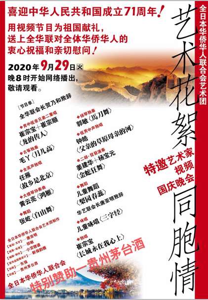 全日本华侨华人社团联合会将在9月29日推出由全华联艺术团举办的“迎中秋庆国庆”视频文艺演出。