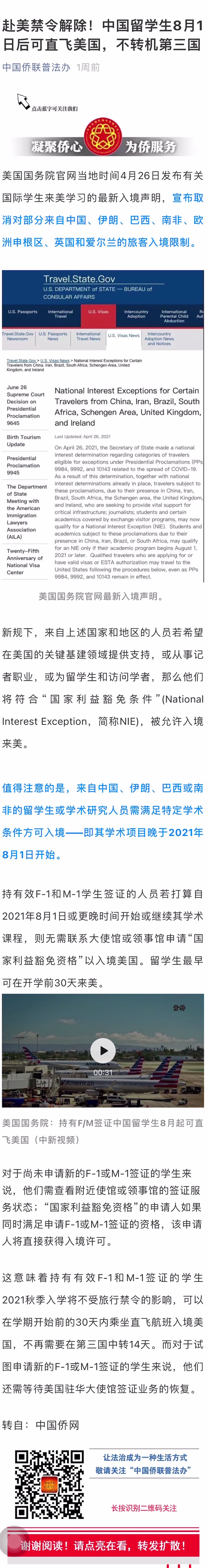 赴美禁令解除!中国留学生8月1日后可直飞美国,不转机第三国