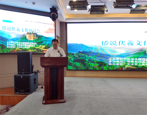 天水市委常委、组织部部长贾义翔代表天水市委致辞。他说,天水作为羲皇故里,现在已经成为世界华人寻根祭祖的圣地,海外华人华侨来天水参加祭祖大典共同探讨伏羲文化,增强海内外中华儿女的根祖认同、民族凝聚和文化自信具有重要意义。