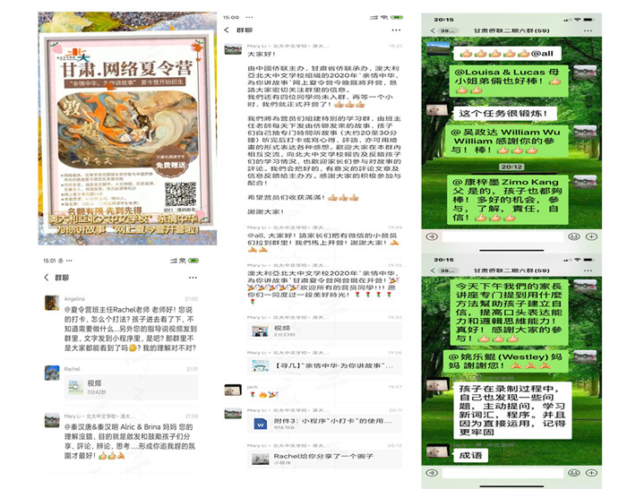 来自西班牙巴塞罗那孔子文化学校、加拿大大温莎文化交流协会和澳大利亚北大中文学校的400余名华裔青少年朋友们通过微信群举行了开营仪式。