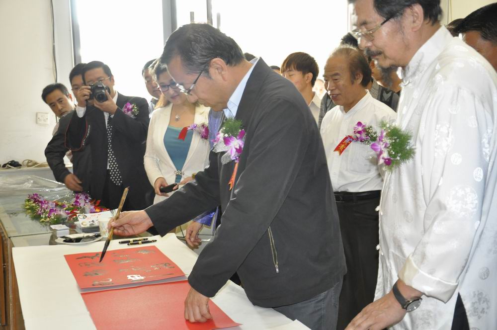 省侨联费亚夫主席宣布书画展开幕