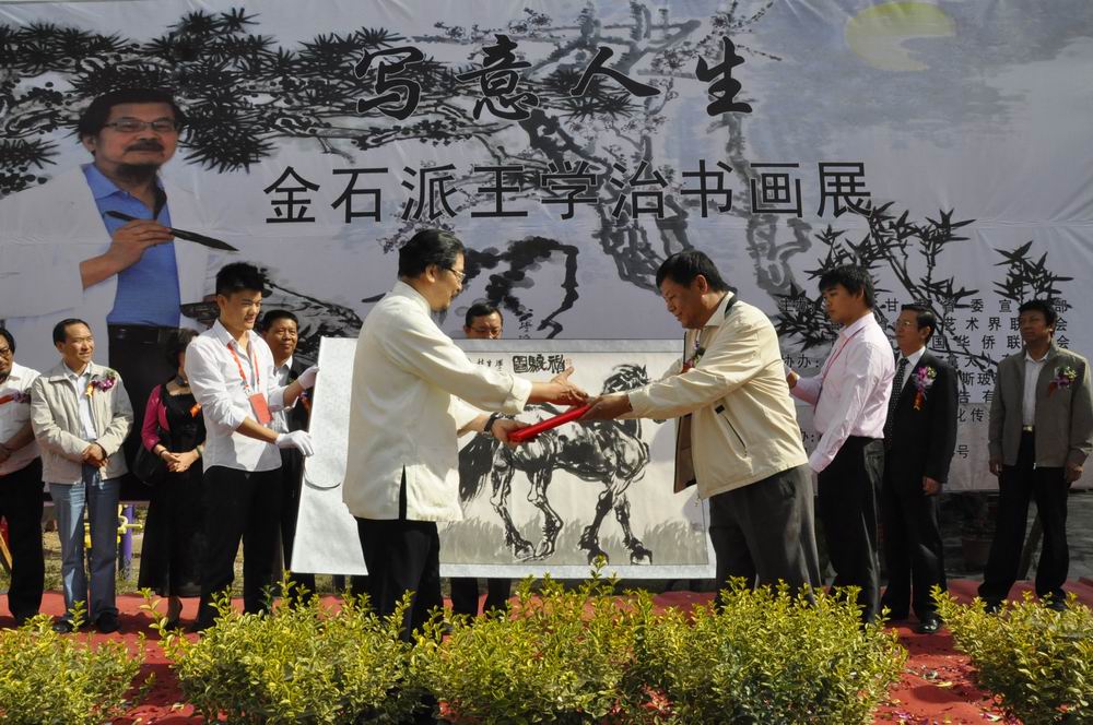 王学治先生虽游学海外多年,依然心系祖国,是著名的爱国华人。此次来甘肃举办书画展,对进一步加深甘肃书画界与海外华人艺术界的交流与合作,推动甘肃书画艺术“请进来”和“走出去”以及推动我省文化传承创新区建设具有重要意义。