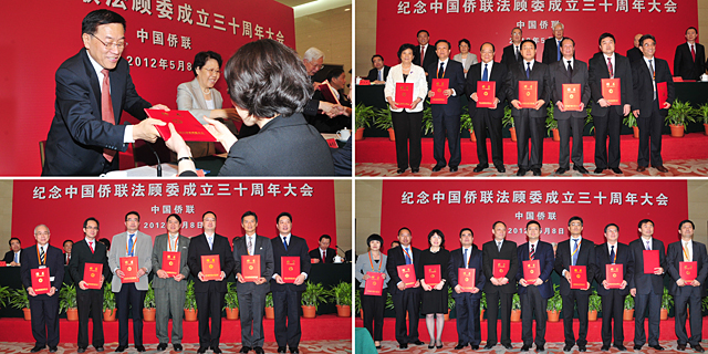大会向新增聘的法顾委国内及海外委员颁发了聘书。中国侨联法顾委主任邹瑜、委员郑治发、海外委员季奕鸿和地方侨联法顾委代表方忠炳先后发言。中国侨联副主席董中原、王永乐,中国侨联顾问、中国侨联法顾委常务副主任、副主任、委员,各省区市侨联主席、法顾委主任,中国侨联机关、企事业单位负责人等近300人出席了大会。